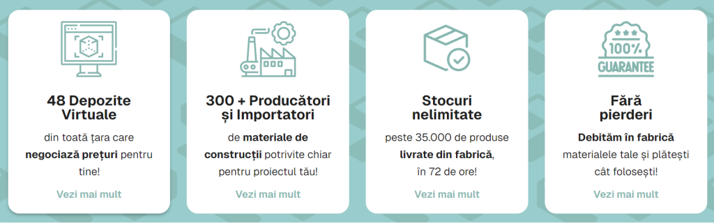 Modelul lor nu este unul clasic, cu depozite fizice în care te plimbi printre rafturi și iei decizii pe fugă, ci funcționează printr-o rețea de peste 50 de depozite virtuale și sute de producători și importatori, ceea ce înseamnă, pe românește, că materialele nu mai fac turism inutil plimbându-se aiurea prin intermediari, ci ajung direct din fabrică pe șantier.
